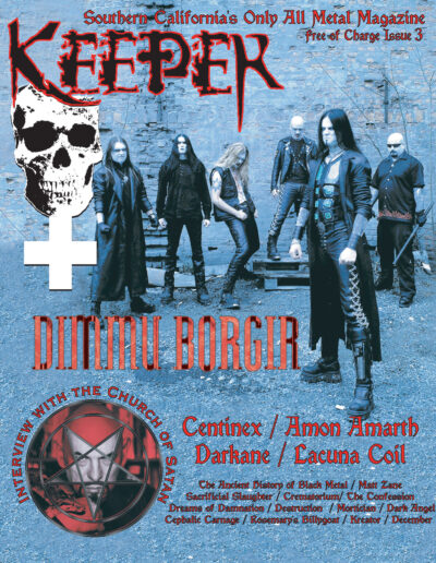By issue three Keeper has hit its stride. It is still amazing to see Daron from System of a Down holding up our first issue back stage at Ozzfest and brings back a lot of memories. The lead feature this time out was an interview with the Church of Satan that we all worked really hard to pull off. There’s also a pretty funny awkward exchange about anime with the beautiful singer of Lacuna Coil.